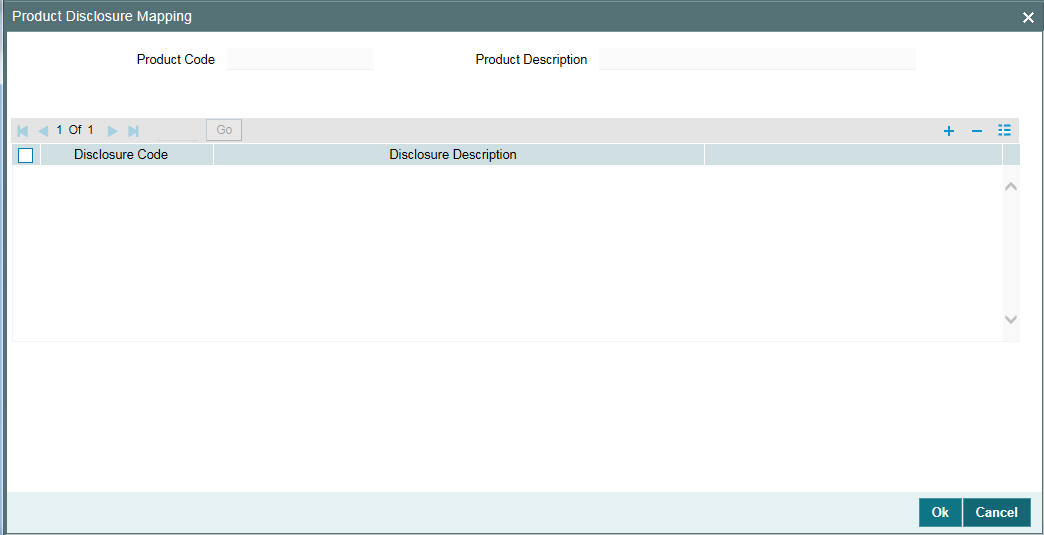 Click ‘Disclosure’ in the ‘Loans Syndication - Facility Product Preferences’ to invoke the ‘Product Disclosure Mapping’ screen.