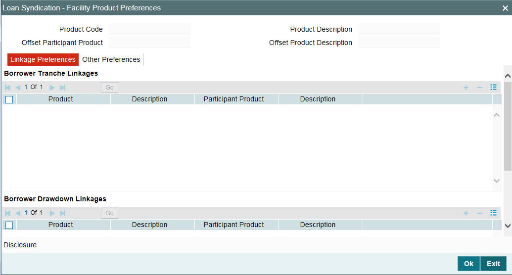 This feature allows you to associate any LC product (which can be treated like a drawdown product) with other drawdown products under a tranche. The participant product that is linked to the borrower facility product while defining the participant product is displayed as the ‘Offset Participant Product’.
