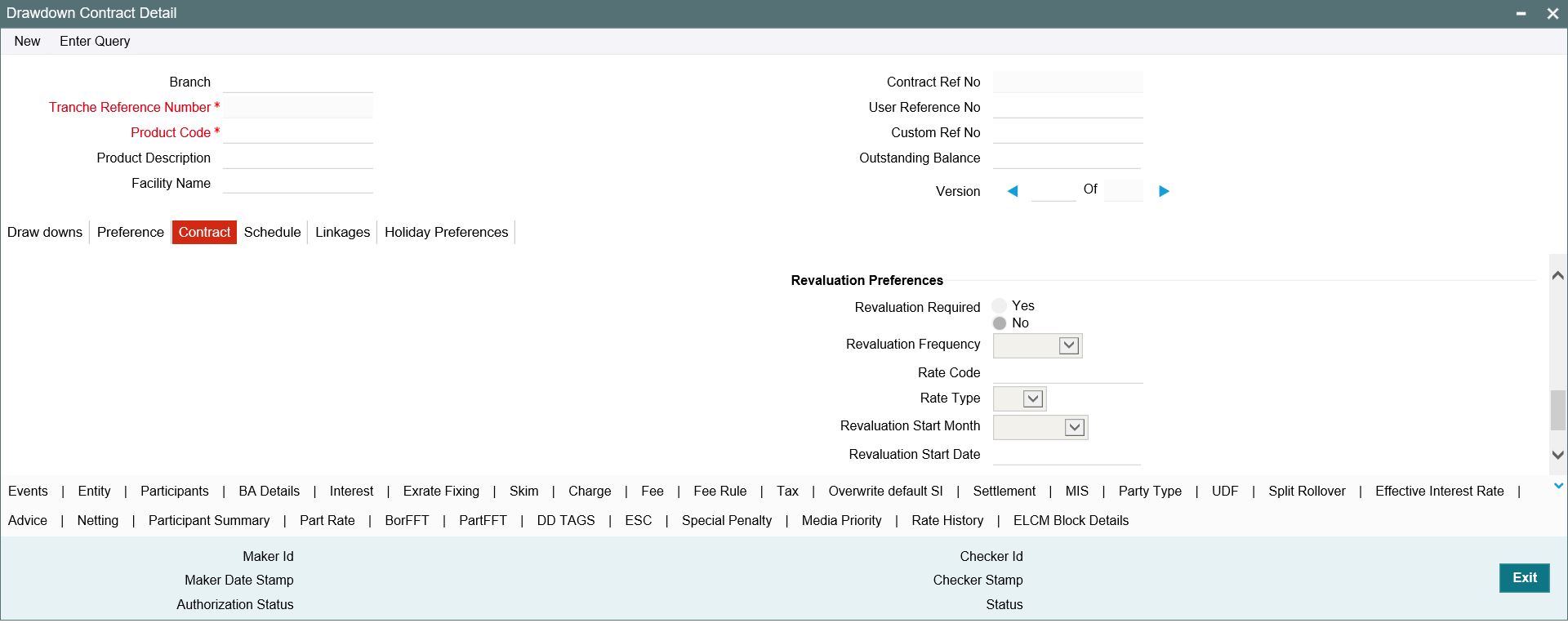 Oracle FLEXCUBE facilitates periodic revaluation of drawdowns if the drawdown currency is different from the tranche currency. The revaluation preferences you maintain as part of additional product preferences defaults here.