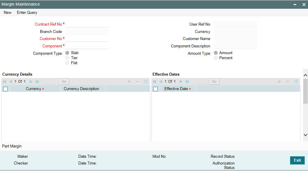 If margin maintenance for an effective date is done, then the system checks if the newly maintained margin is within the floor and ceiling values applicable from the effective date of maintenance till the next effective date or the current application date. In case of any deviations, the system does not allow you to maintain such margin rates.