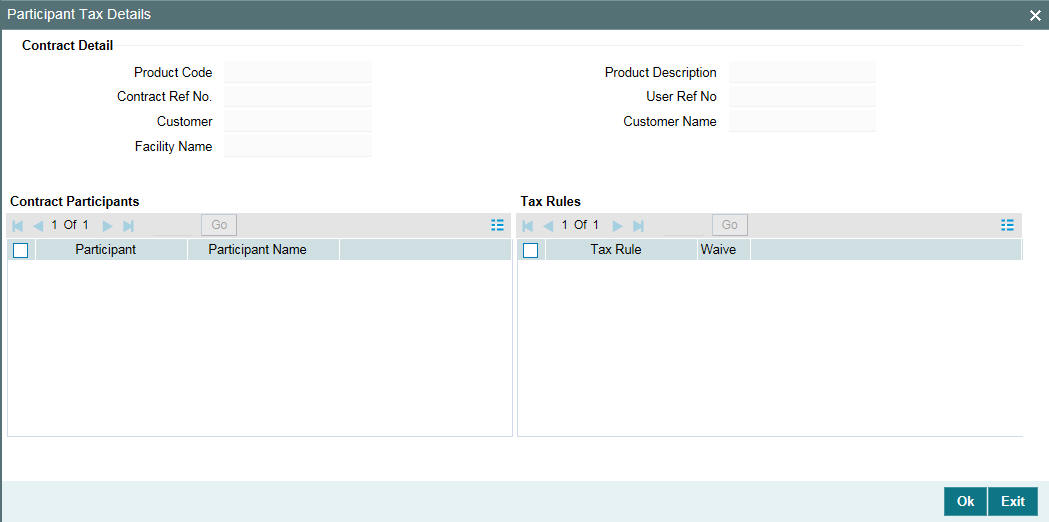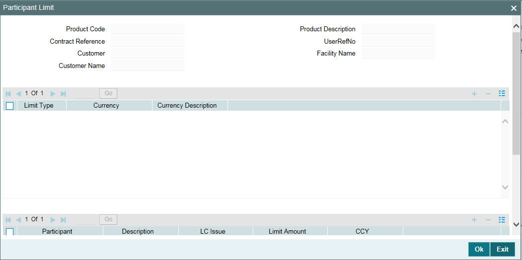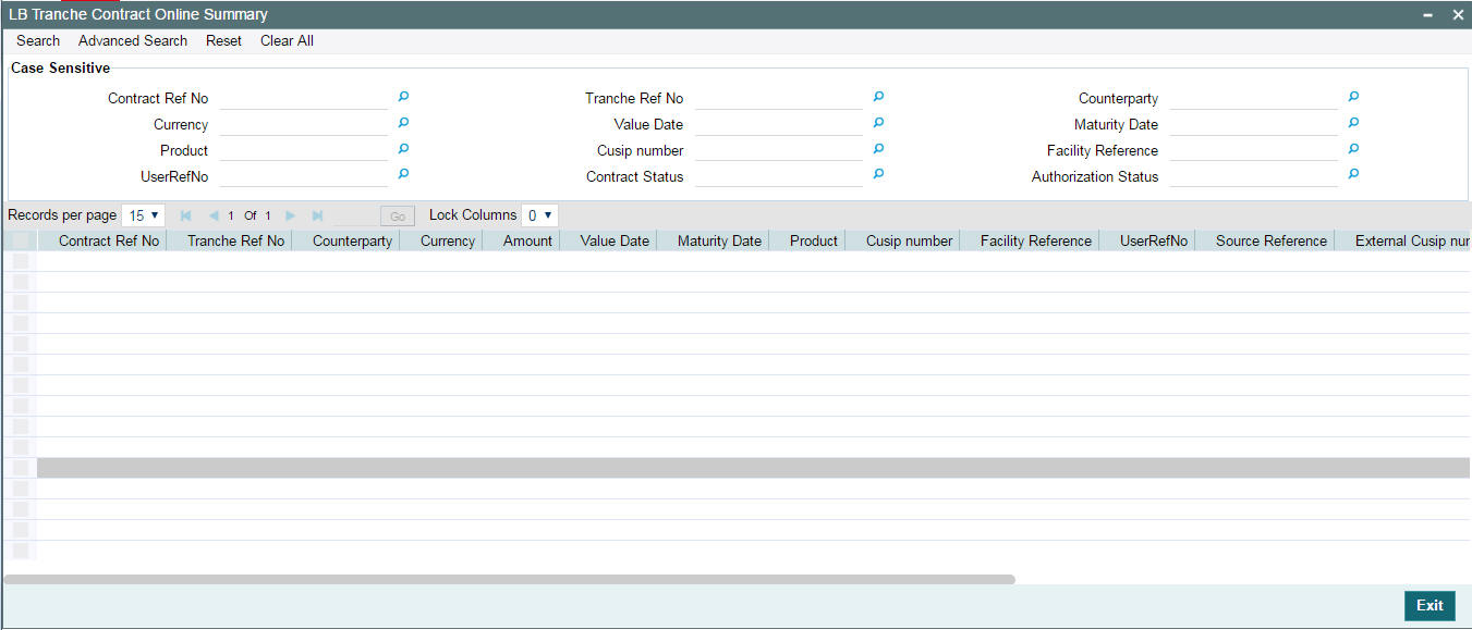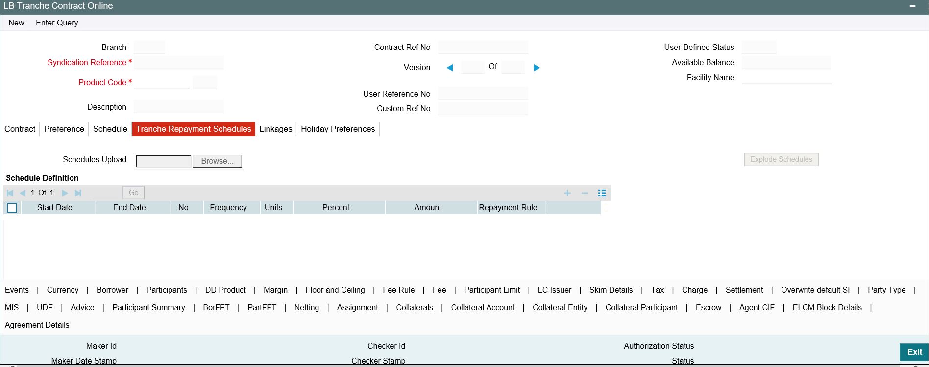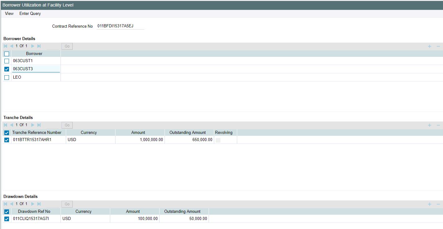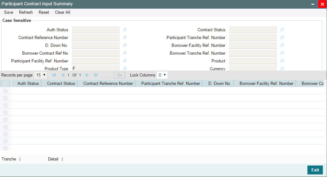 Click this tab to invoke the ‘Participant Facility Contract Summary’ screen. In this screen, you can view the underlying Tranche and Drawdown contracts for the Facility contract. |