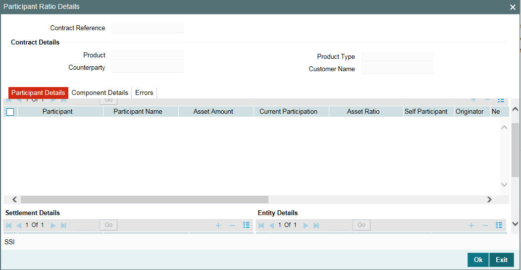 This tab invokes the ‘Participant Ratio Details’ screen. |