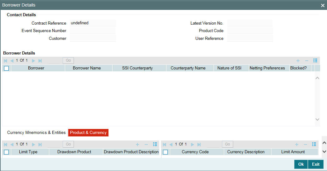 Click on this tab to specify the details pertaining to the borrowers of the facility contract. |