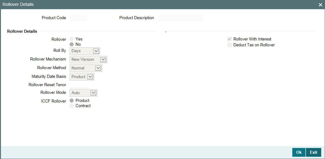 However, a drawdown involving such a product will be rolled-over only if it is not liquidated, on its Maturity Date. You can choose not to rollover a drawdown involving a product with the rollover facility. This can be indicated when processing the drawdown.