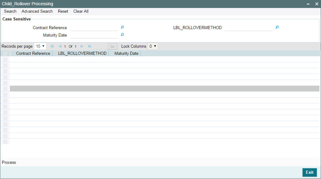 In the case of future dated rollovers, ORACLE FLEXCUBE allows you to create the rollover child contracts in advance i.e. before the rollover date. You can use the ‘Rollover Child Processing’ (LBSPAROL)screen to generate the child contracts.