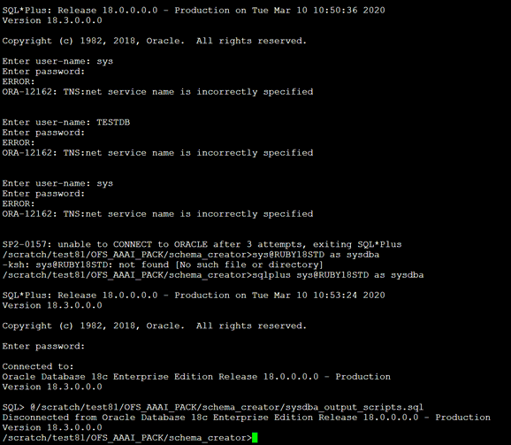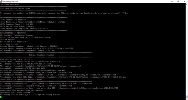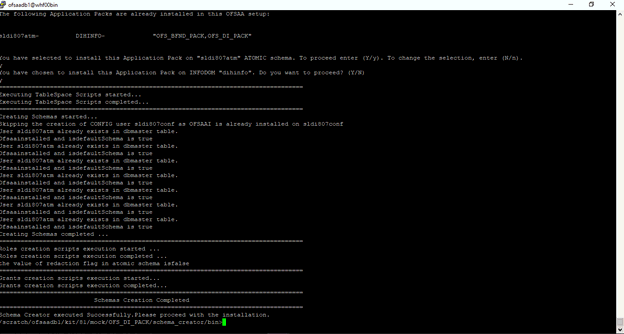 Schema Creator executed successfully. Execute the OFS_DI_PACK/schema_creator/sysdba_output_scripts.sql file before proceeding with the installation.