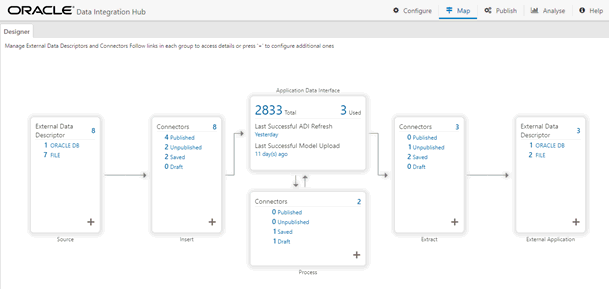 3. Click Data Integration Hub. The DIH Designer window depicts the design of the application.