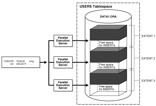 パラレルSQLと同じく、 パラレル・リカバリ、パラレル伝播およびパラレル外部表ロードは、パラレル実行コーディネータと複数のパラレル実行サーバーによって実行されます。ただし、SQL*Loaderを使用したパラレル・ロードでは異なるメカニズムが使用されます。