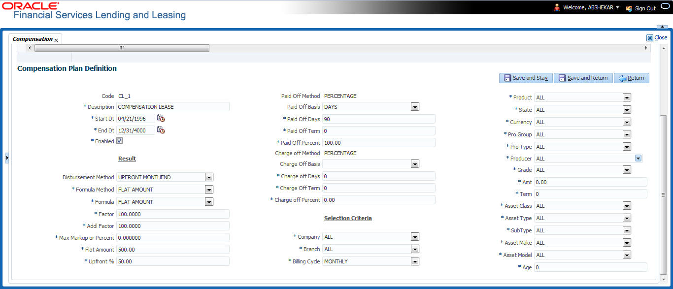 For more information on how OFSLL handles Usage based leasing, refer to Appendix - Usage Based Leasing chapter and for Rental based leasing, refer to ‘Rental Agreement’ section in Lease Origination User Guide.