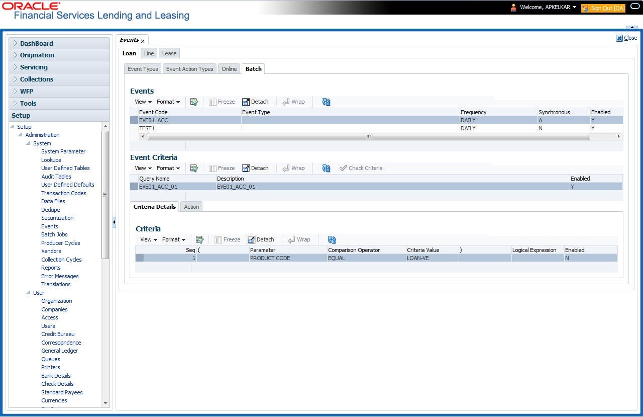 Select the event criteria from the drop-down list. The list is populated based on the enabled event criteria maintained for the selected event in Events setup screen. |