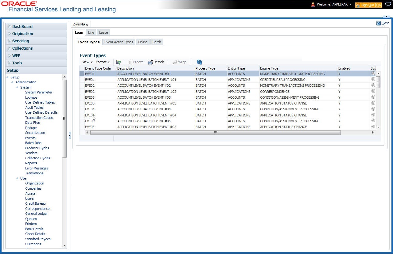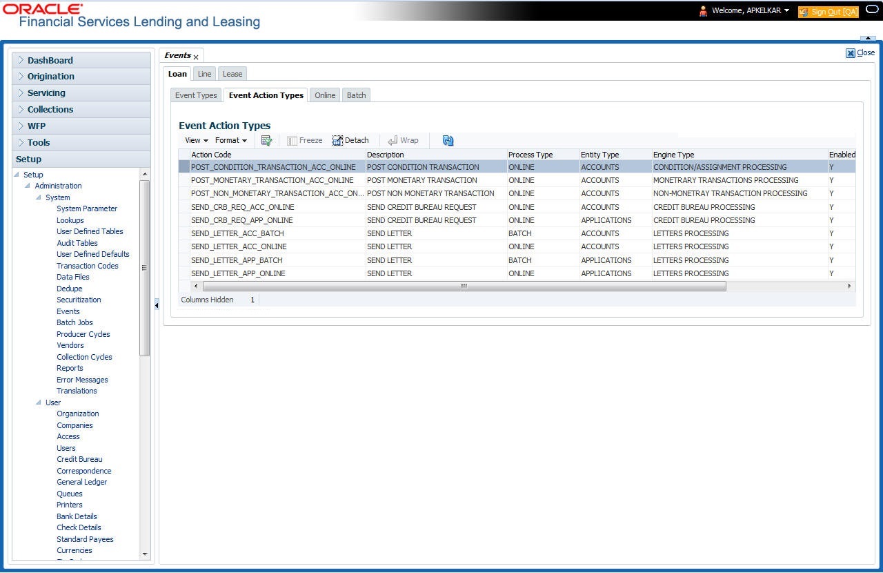 Many of these tables, (Asset Tracking Attributes for example) may be configured during the initial setup of the application to provide for your specific business needs. Others, such as Application Search, may be changed whenever your business needs change. Still others should not be changed without consulting Oracle Financial Services Software, as changing them would require changes to existing code for the expected results to be implemented. As a thumb rule, it is better to add or disable information on the User Defined Tables screen than to edit existing entries.