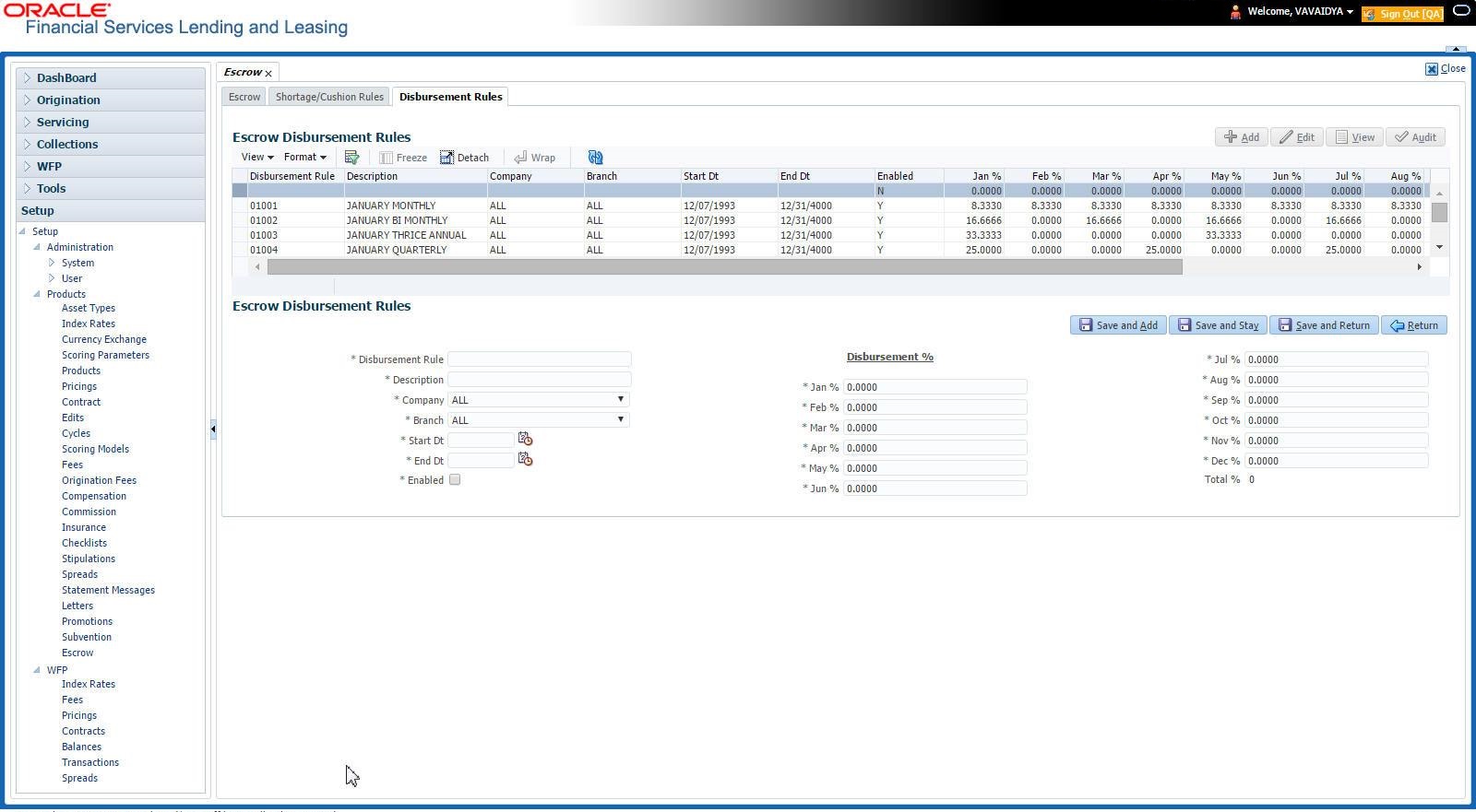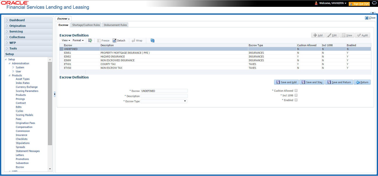 Oracle Financial Services Lending and Leasing provides tax and insurance escrow for loans. The Escrow screen contains subsection that allow you to set up these features.