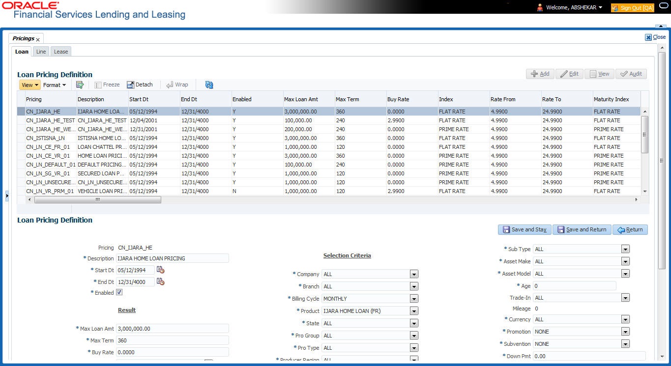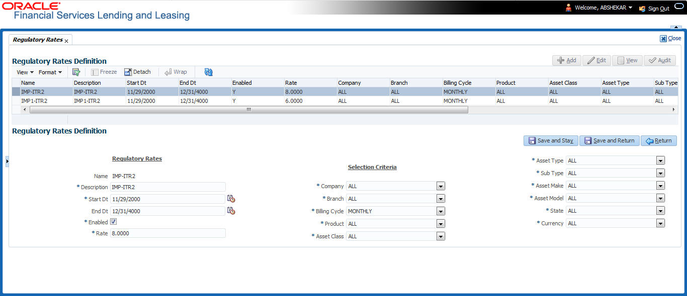 For more information on how OFSLL handles Usage based leasing, refer to Appendix - Usage Based Leasing chapter and for Rental based leasing, refer to ‘Rental Agreement’ section in Lease Origination User Guide.