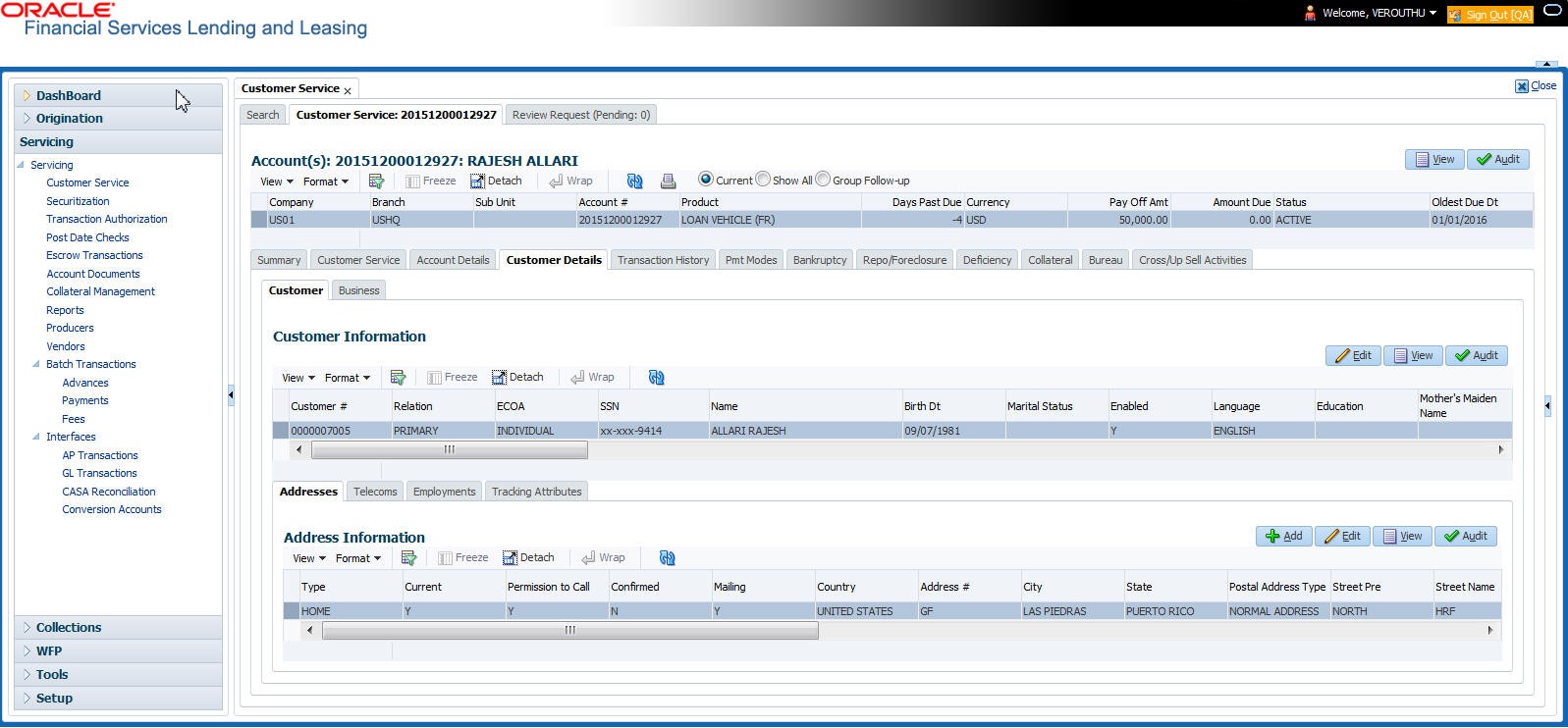 On successfully posting the transaction, a confirmation message is displayed in Result section and the details are populated in Customer Service > Customer Details > Address Information sub tab.