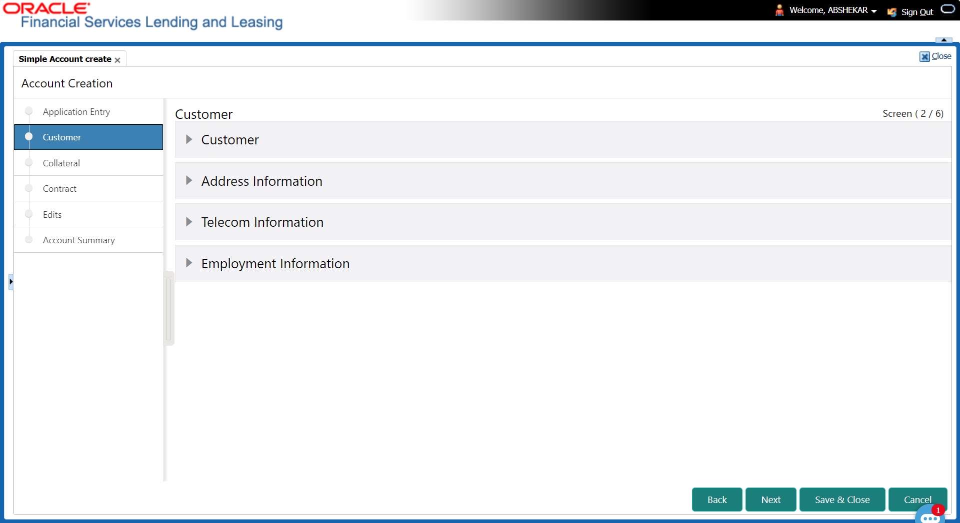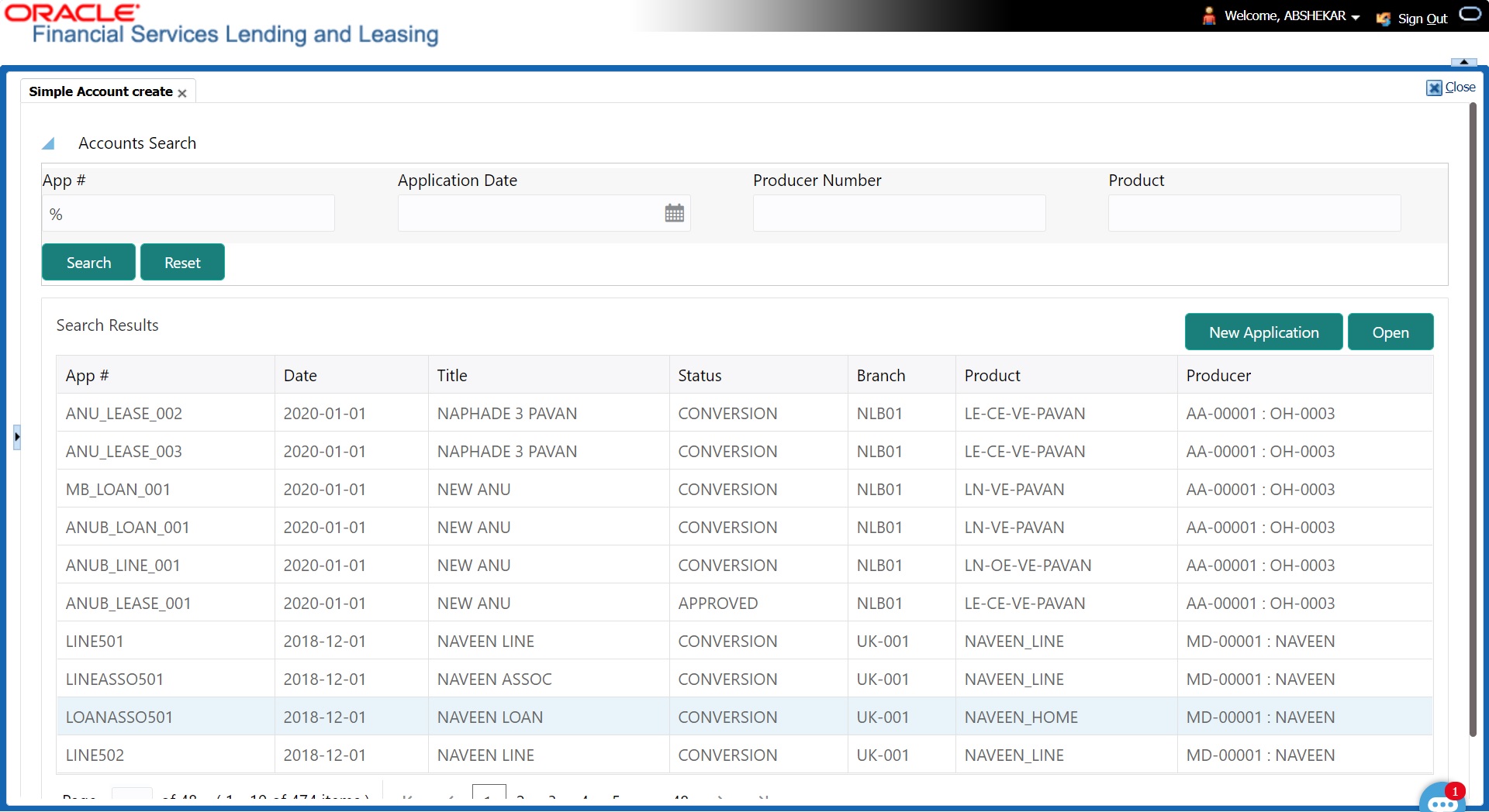 Simple Account Creation is an enhanced interface provided in OFSLL using the Oracle JavaScript Extension Toolkit (Oracle JET) frame work. This is an additional interface supported from OFSLL to the existing Customer Servicing Account creation screen and both intended to coexist in the system till further updates.