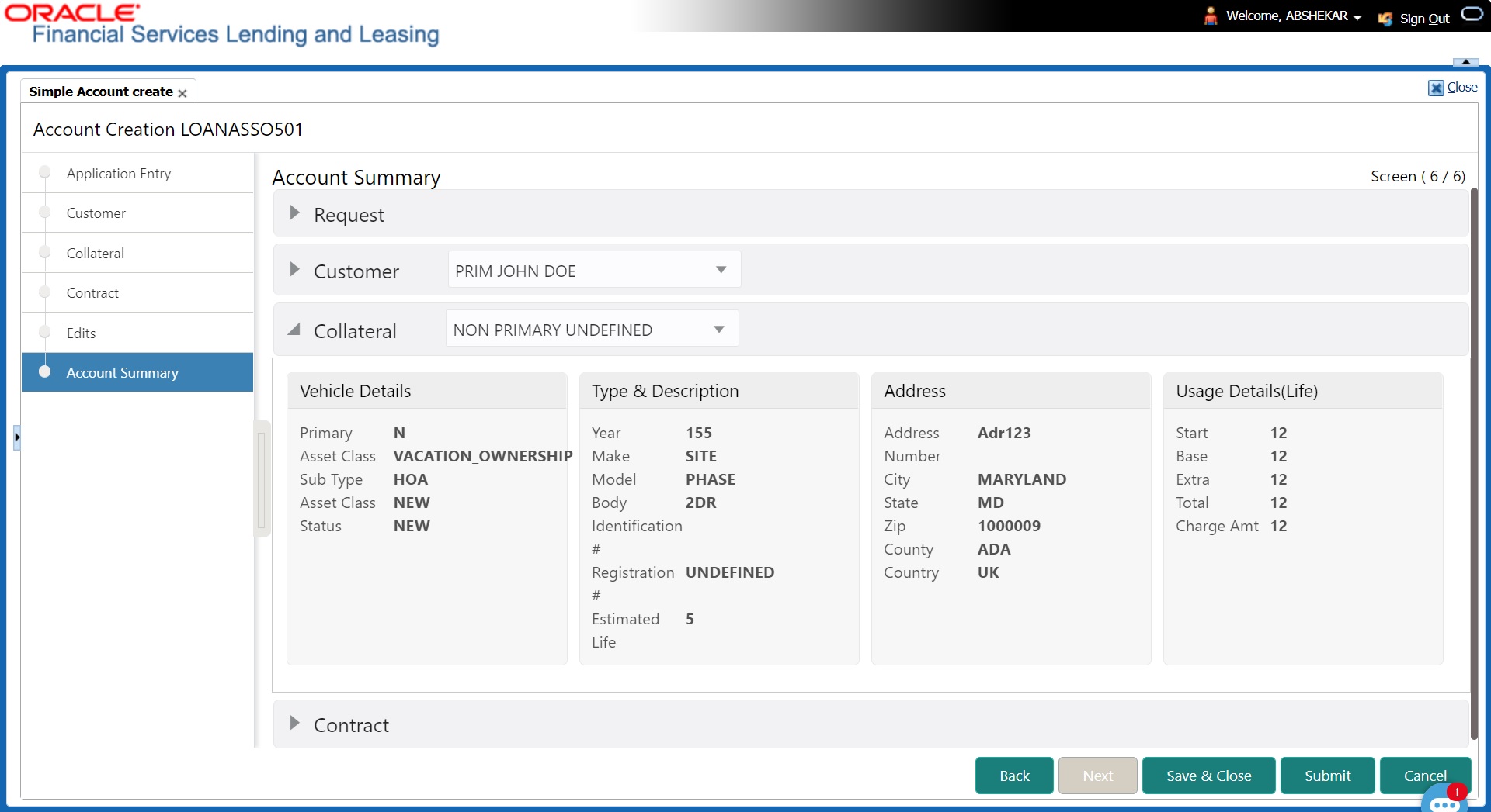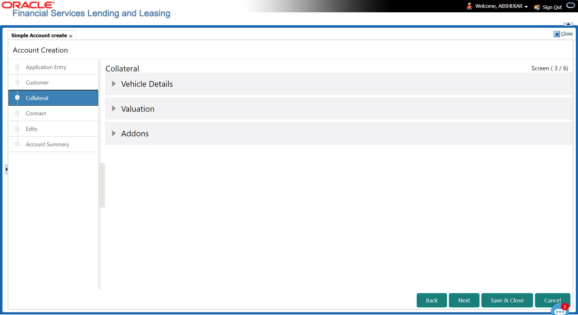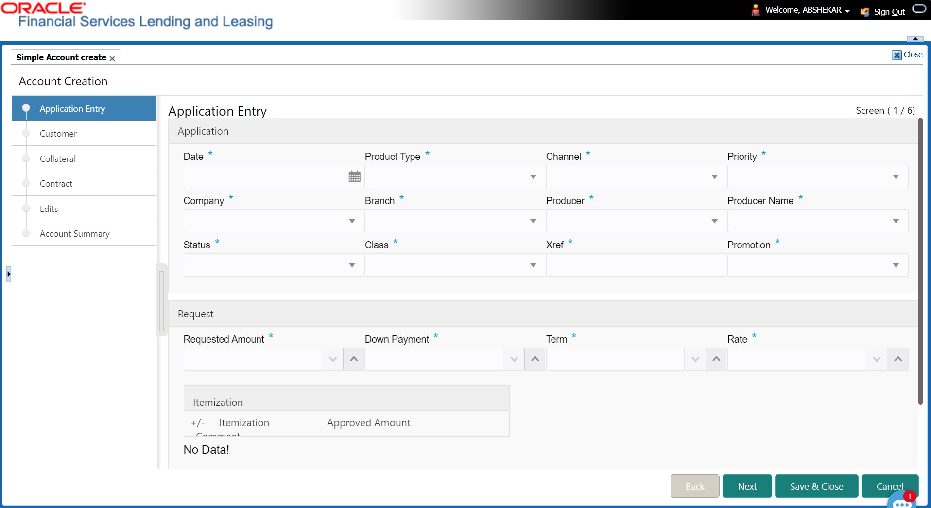 The Account Creation gives a smooth workflow and a simplified way of creating an account with less number of steps and much improved user interface. However note that, this screen only supports the Auto-Loan in this release and does not have capability to handles other types of Loans, Lines and Lease.