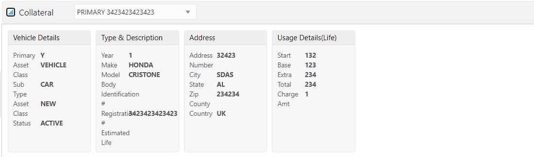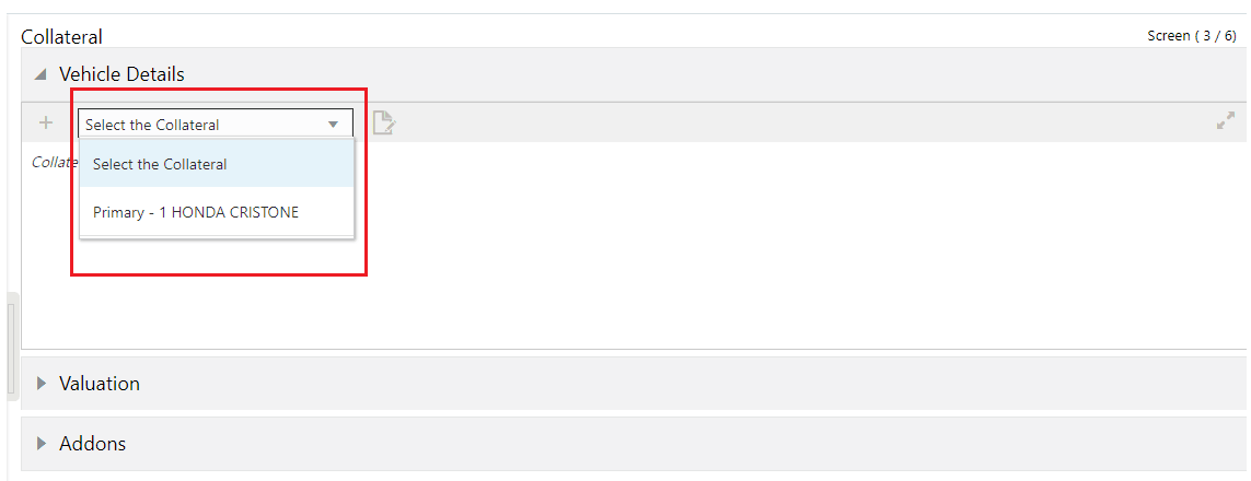 o In case of multiple collaterals attached to an application there is a dropdown provided to select a particular collateral.