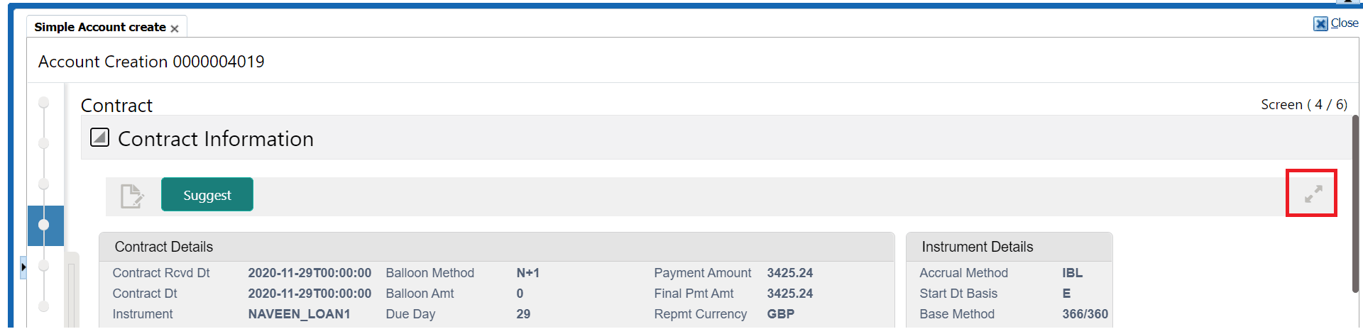 o Expandable icon enabled user to expand the contract information and “OK” button provided to collapse to normal view.