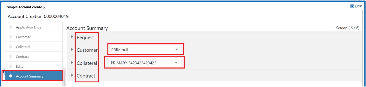 o An “Account Summary” section is provided to show the summary of application details provided in various section before creating an account.