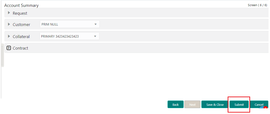 o Provided ‘Submit’ button submits the application for validation and if all validation are success, then system will create the account