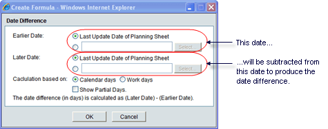 The formula for date difference subtracts one date from another to give you the number of days between the dates.