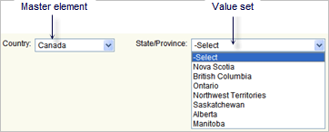 For example, you could use the master element and only a value set to create a country and state/province dynamic set.