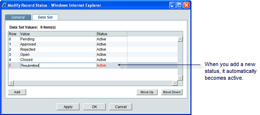 - In the left Navigator, click Data Structure Setup > Statuses. Under Statuses, choose: