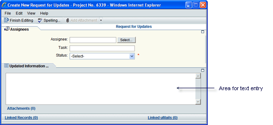 Text BPs contain a text entry area that appears at the bottom of the form if the business process requires an action. This area is where the user enters the requested text.