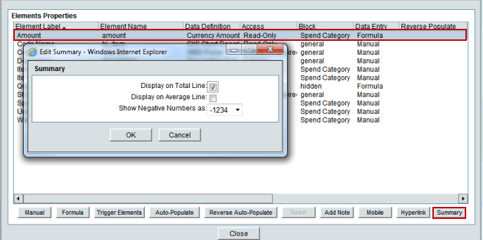 - Click the Summary button on the Upper form toolbar. The Summary Element Picker opens.