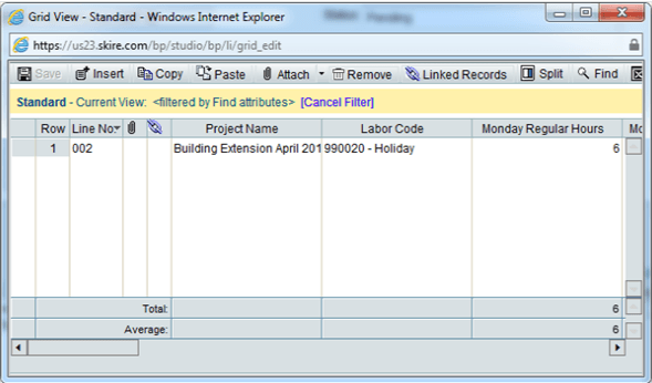 You can add line item grid summary to a line item business process and use it to track and display, for example, the number of hours performed on a project on a daily basis. You can configure the summary to display Total and average amounts. Summary is allowed only for numeric data elements