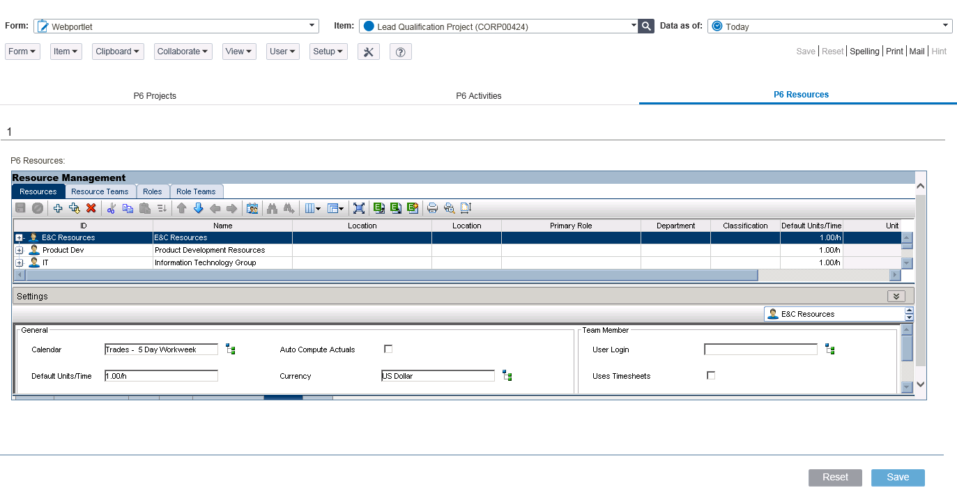 - To view the information in the Web portlet publish it to the P6 server. For more details, refer to the Online Help.