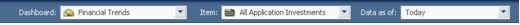 In the title area, you can select the dashboard, item or portfolio, and data version to be viewed. Click the fields and select from their respective pop-up windows.