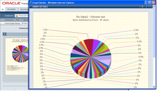 Clicking a graph opens the Graph Details pop-up window in which the graph is maximized. When a pie graph is shown within the Graph Details popup, the distribution percentages are rendered as callouts, connected to each slice, as can be seen below: