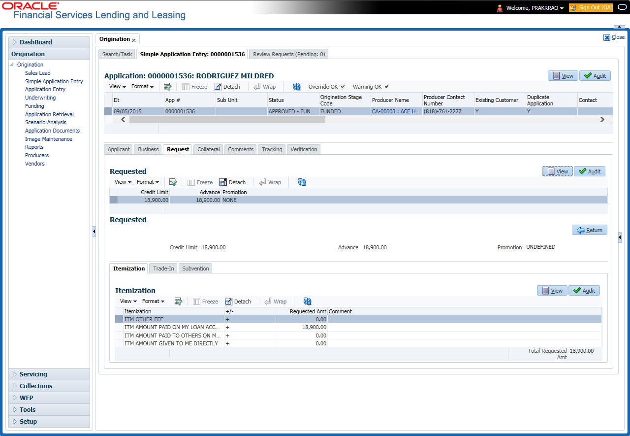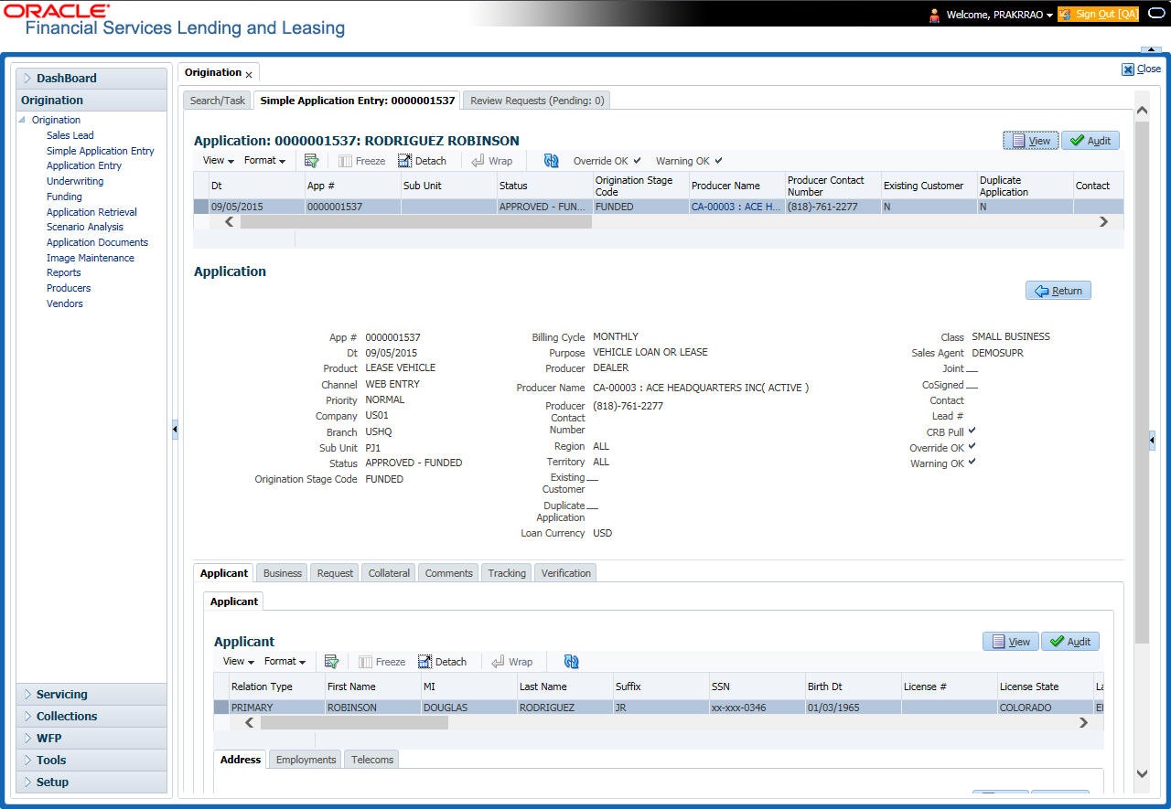 After entering the basic details of the applicant like identification and demographic details along with the address, employment, assets, liabilities and other income information and requested details, the user has to check whether the application pre-qualifies or not by clicking Pre-qualify Application button. This is governed by a set of Pre-qualification edits.