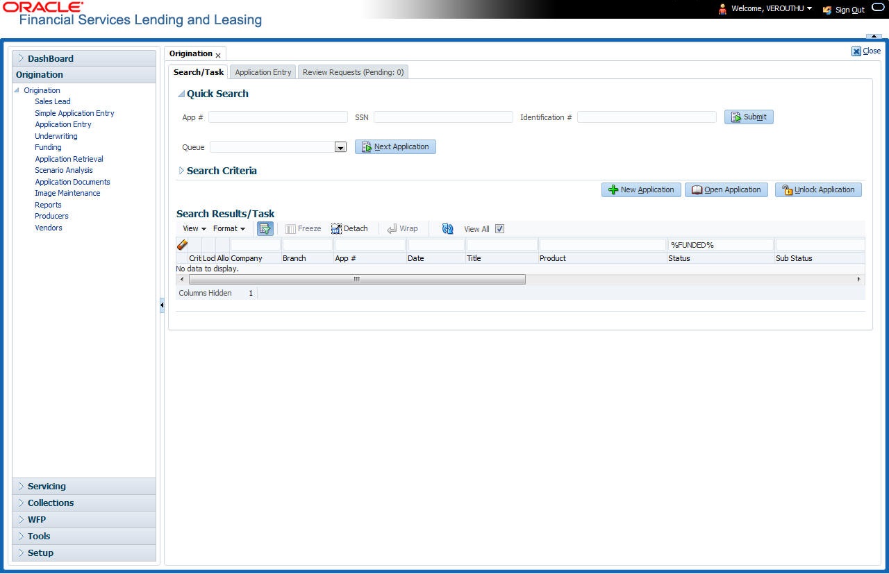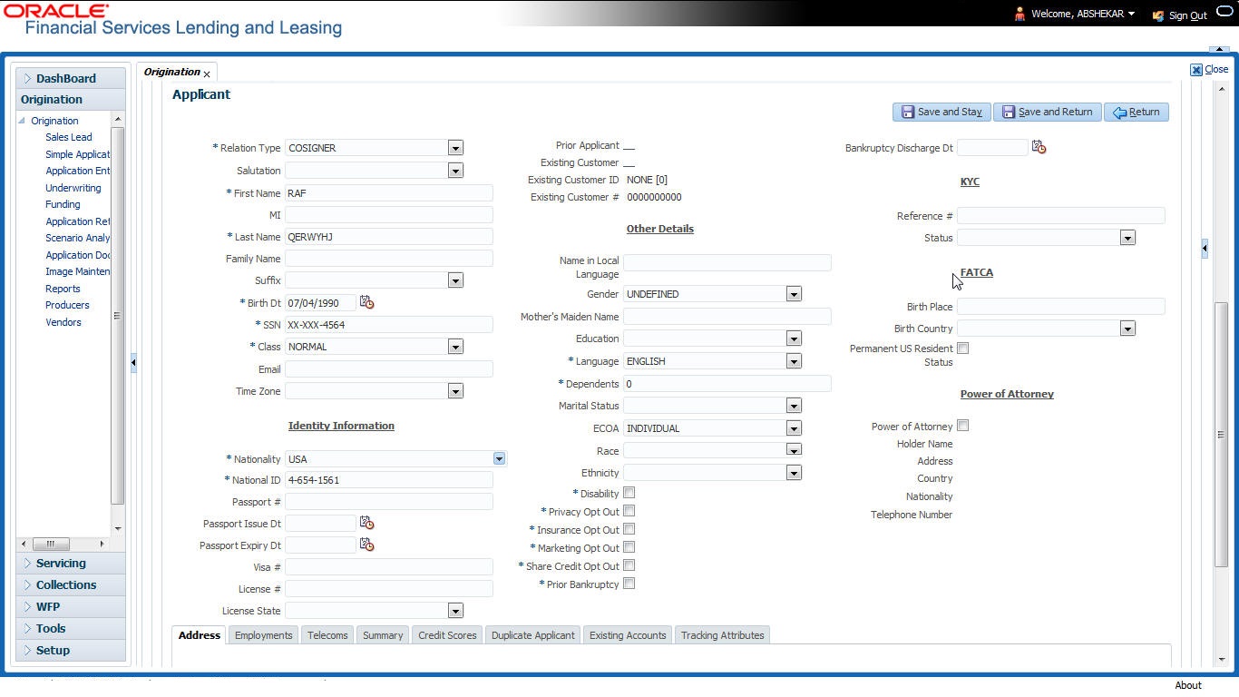 You can also enter credit application data into Oracle Financial Services Lending and Leasing Application using the Fax-In container. For more details, refer to ‘Application Entry using Fax-In’ section.