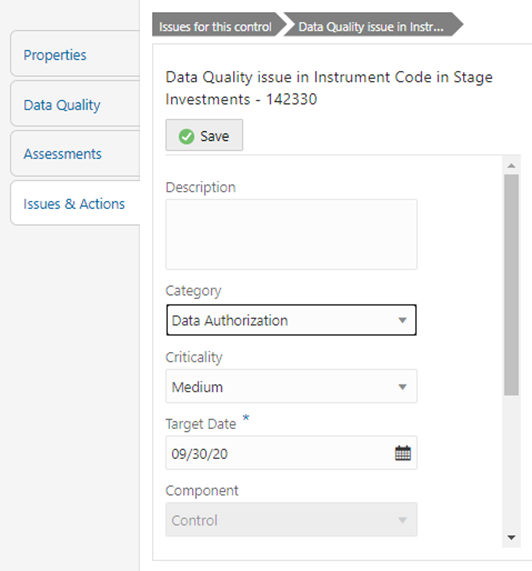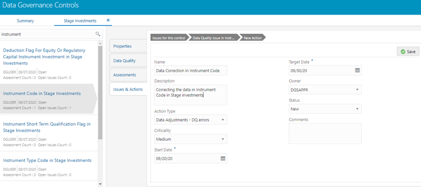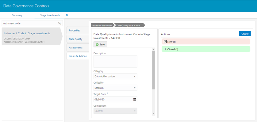 Figure 119: Data Governance Controls – Issues & Actions