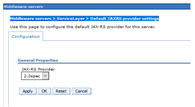 - Navigate to Servers>>Server Types>> Websphere Application Server and select the required Application Server. Ex: Middleware servers > ServiceLayer > Default JAXRS provider settings