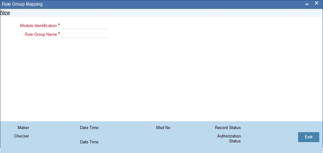 If you are maintaining details of a new media control system click the ‘New’ button on the Application toolbar. The ‘Message Media Control Maintenance’ screen is displayed without any details.
