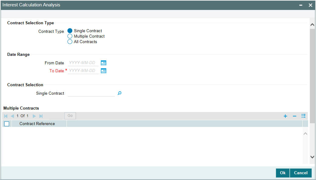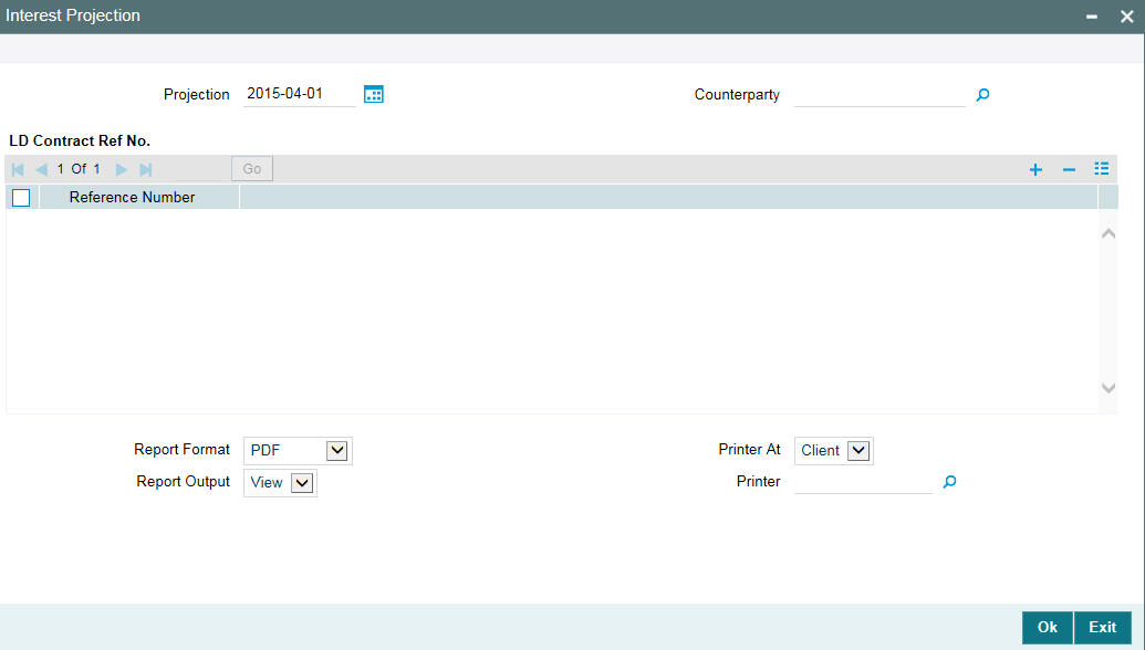 You can invoke the ‘Interest Projection’ screen by typing ‘OLRENQRY’ in the field at the top right corner of the Application tool bar and clicking the adjoining arrow button.