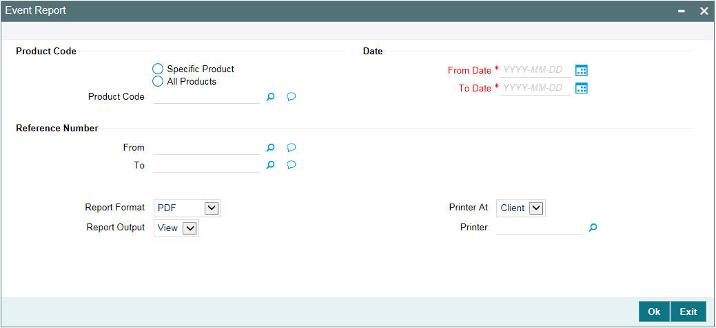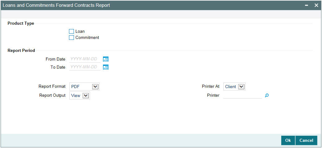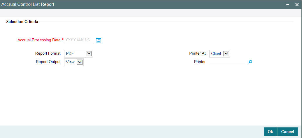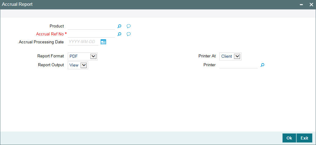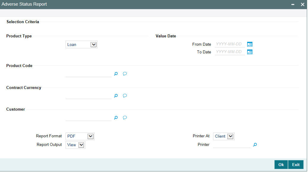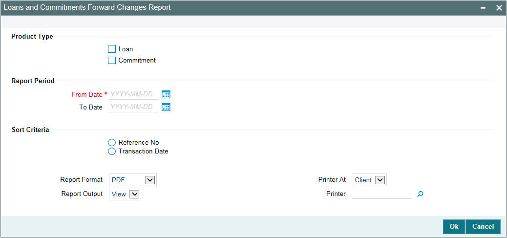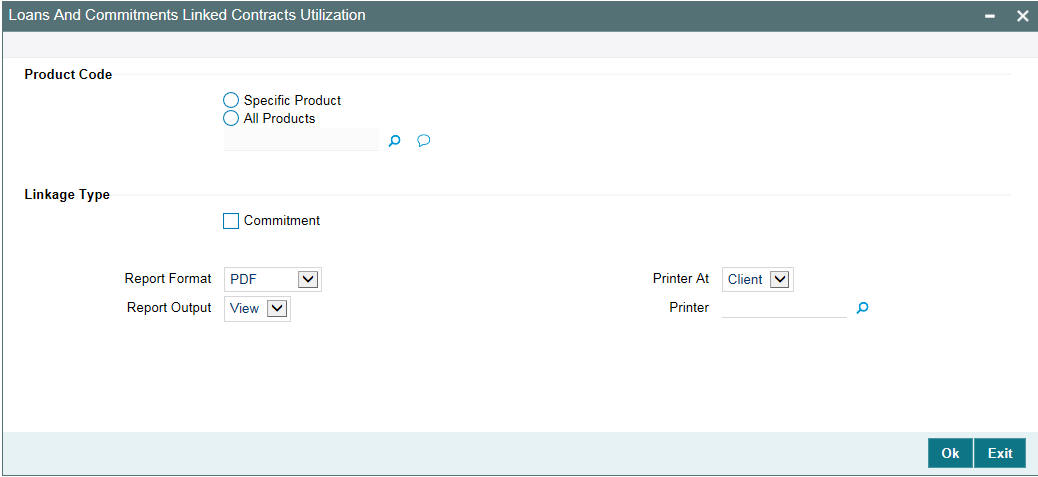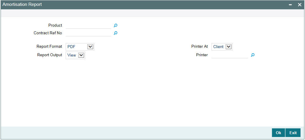 You can invoke the ‘Amortisation Report’ screen by typing ‘OLRPAMSC’ in the field at the top right corner of the Application tool bar and clicking the adjoining arrow button.