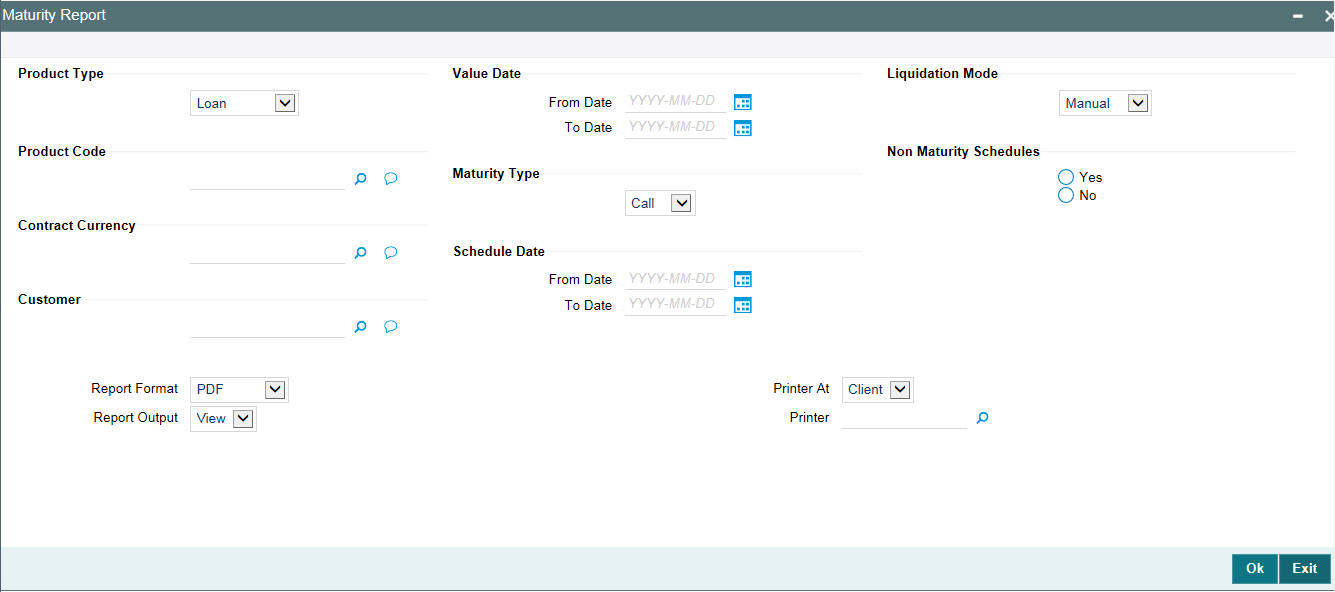 Specify maturity date from when you want to generate the report from the adjoining calendar.