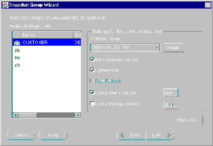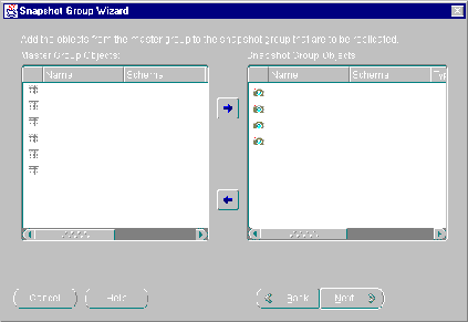 Figure 5-4 Snapshot Group Wizard Converts Tables to Snapshots