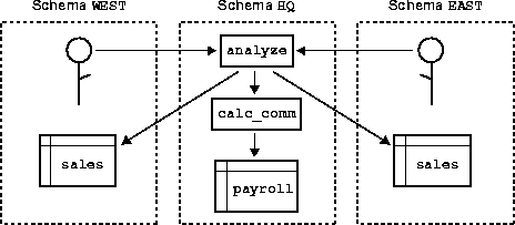 logs on, and then calls the routine, it connects to the Atlanta database as user scott