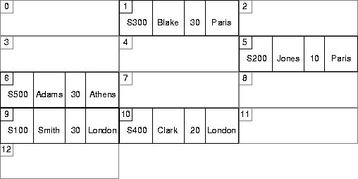where token is the key, docid is a unique identifier (e.g., object identification) for the related document, and data is a segment containing IR specific quantities. For example, a probabilistic IR scheme could have a data segment with token frequency and occurrence list attributes. The occurrence list identifies all locations within the related document where the token appears. Assuming an IR scheme such as this, each index entry would be of the form: