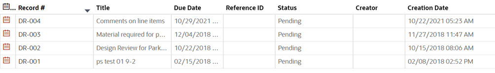 Each record contains all the information that was generated during the cycle, including the forms, documents, comments, and other data that was collected in Primavera Unifier during runtime.