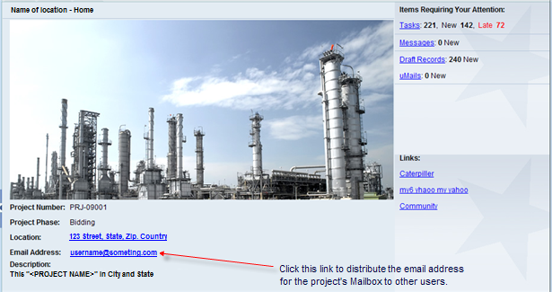 In addition to the Standard tab, you can distribute the email address from the project's landing page. Remember to add the new recipient to the approved email list for this mailbox (Creating an Approved Email List for Project/Shell Mailboxes).