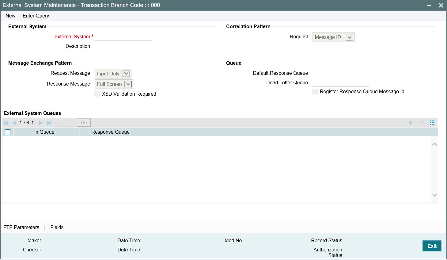 Ensure in OBCL you maintain an active record with all the required fields and ‘External System’ in ‘External System Maintenance’ screen. For example maintain External System as “INTBANKING”.