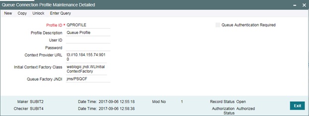 Queue profile requires the context provider URL of the Application Server where the queue created. All other parameters are same as mentioned above.