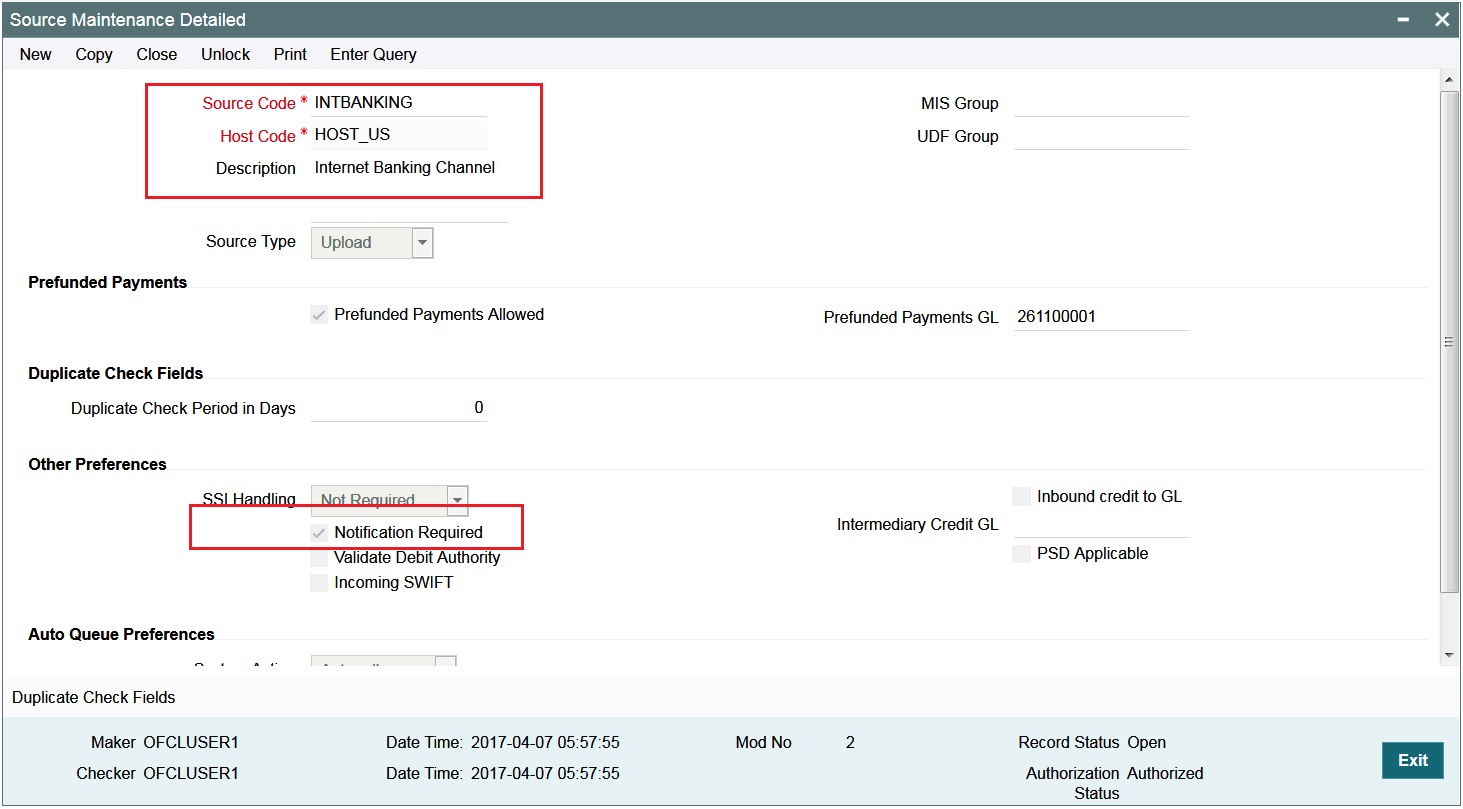 Ensure you maintain an active record with all the required fields in ‘Source Maintenance Detailed’ screen.