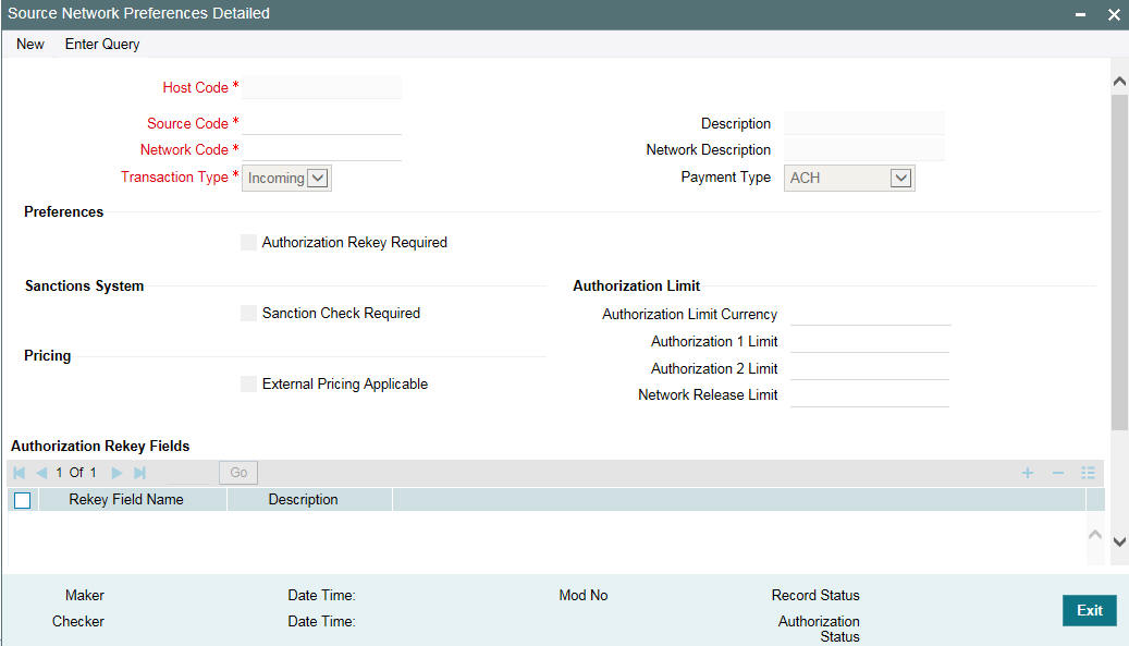 Modifications to existing authorizations as well as creation of new authorizations would need approval by another user or by the maker (if the branch and user supports Auto-authorization facility).